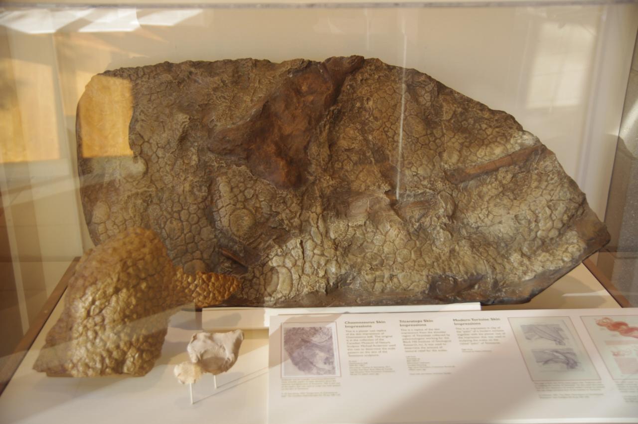 Время и место существованияСуществовали хасмозавры в конце мелового периода, около 76,5 – 75,5 миллионов лет назад (кампанский ярус). Были распространены на територии современной Канады, в знаменитой сокровищнице окаменелостей – провинции Альберта.![]() Образ динозавра, умело расписанный Кэйдзи Тэракоси. Виды и история обнаруженияНыне общепризнанны два вида – Chasmosaurus belli (типовой) и Chasmosaurus russelli.Останки первого были найдены канадским палеонтологом Лоуренсом Ламбом, состоящим тогда в Канадской Геологической Службе. Это был фрагмент костного воротника, самой удивительной части хасмозавра. Научное описание сделано им же в 1902 году. Он ошибочно причислил его к уже известному ранее роду моноклонов (цератопсов с коротким воротником), выделяя в отдельный вид Monoclonius belli. Название вида belli дано в честь американского палеонтолога Джона Белла Хетчера, первооткрывателя останков торозавра. Уже в 1913 другой американский палеонтолог Чарльз Штернберг вместе с сыновьями находит несколько полных черепов в средних слоях формации Парк Динозавров (провинция Альберта, Канада). На основании их Ламб делает повторное описание, на сей раз как Chasmosaurus belli. То есть исправляет свою прежнюю ошибку и формирует новый род. В том же году экземпляр Chasmosaurus canadensis был реклассифицирован учёным и причислен к виду belli. Последующие годы подарили новые образцы хасмозавра, в том числе достаточно полные черепа. Как и черепа трицератопсов, они весьма вариативны. Формы, пропорции воротников и размеры рогов индивидуальны. Это создавало и создаёт проблему при классификации рогатых динозавров. Строение телаДлина тела хасмозавр достигала 6 метров. Высота же до 2,5 метров. Весил он до 3,6 тонн.![]() Передвигался на четырёх согнутых конечностях, потому туловище располагалось низко. Передние конечности заметно короче задних. Особой гордостью ящеру служил длинный широкий воротник с просторными окнами, закрывавший шею и часть спины. По сути он представлял собой оборочный каркас, на который была натянута ороговевшая кожа. Это форма художественного сердца с линией, разделяющей половины. По всему периметру он был украшен костными отростками, достигавшими наибольшей длины на верхних краях воротника хасмозавра. С большой вероятностью сея конструкция являлась отличительным признаком индивида и использовалась для привлечения самок в брачный период. Она могли быть очень ярко раскрашена или даже нести чёткий узор, подобно капюшону современных кобр. Высказывается ещё одна оригинальная версия о терморегуляционных функциях воротника. Подобно гребню спинозавра или пластинам стегозавра, он мог быть снабжён системой кровеносных сосудов и способствовать нагреву тела под лучами солнца после прохладных ночей. Дополняли головной убор хасмозавра два небольших рога над глазами и один в носовой части. Предположительно, самки были меньше самцов и обладали менее заметными воротниками и особенно рогами. Хвост хасмозавра был коротким и относительно тонким, ибо плотное низкое тело не нуждалось в дополнительном балансе. Один из образцов, найденный Штернбергом содержал фрагменты окаменелой кожи! Окаменелость сыграла огромную роль в науке, позволив реконструировать эпидермис хасмозавров и родственных цератопсов. Сейчас остаётся загадкой лишь цвет. ![]() На фотографии представлена окаменелая кожа х