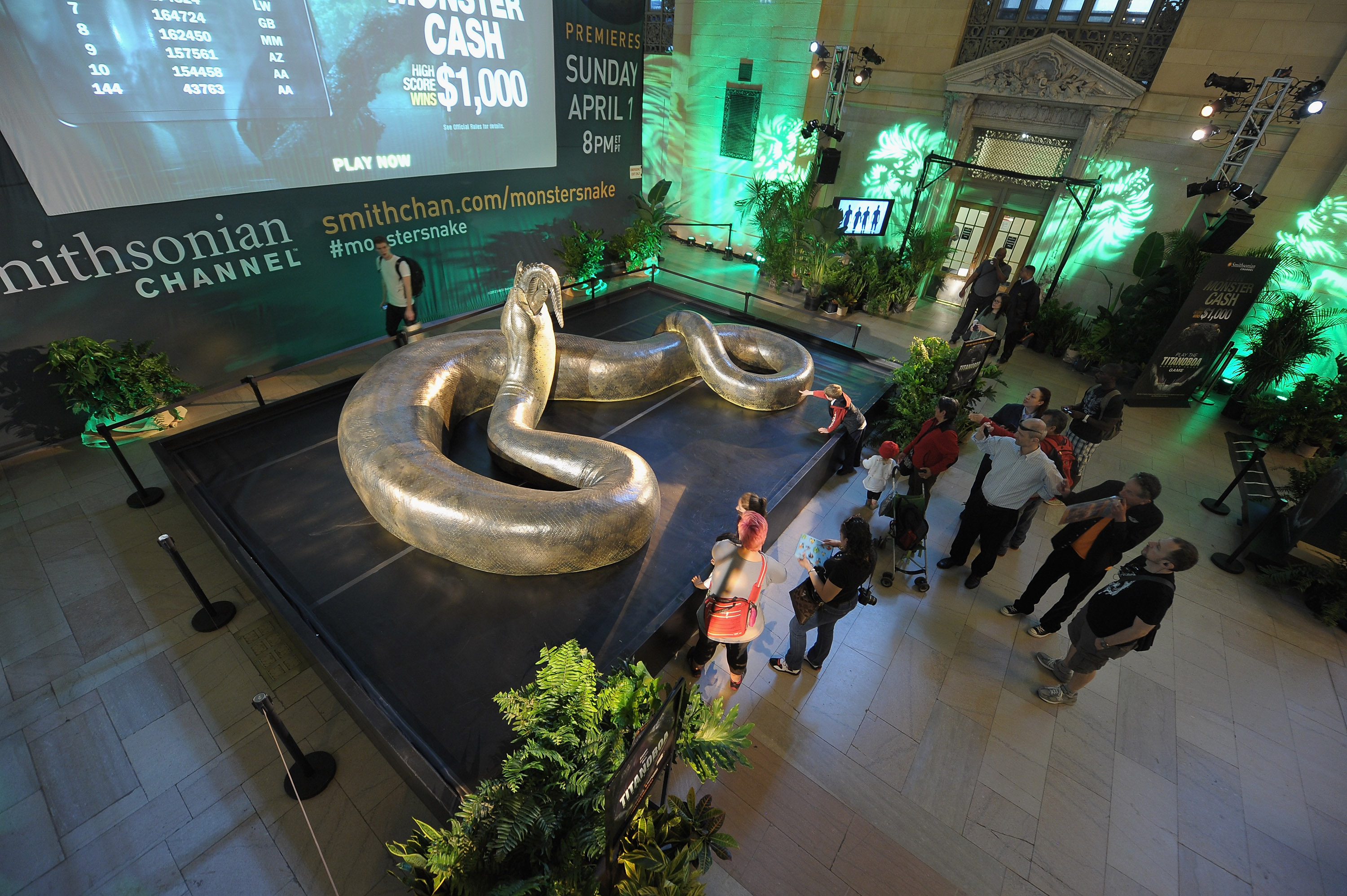Питание и образ жизниВ те далёкие времена формация Серрехон представляла собой прибрежную равнину, покрытую влажными тропическими лесами. Судя по всему, здесь имелась крупная и разветвлённая речная система. Обилие растительной пищи вкупе с благоприятным климатом послужило развитию уникальной экологической системы. На вершине пищевой пирамиды здесь находилась огромная змея – титанобоа.Ранее высказывались мнения о том, что "гигантский удав" достигал таких невероятных размеров благодаря более жаркому климату, чем тот, в котором живут её нынешние сородичи. Температура оценивалась около +30 градусов по Цельсию. Это связывалось с тем, что змеи являются пойкилотермными (холоднокровными) животными. Говорилось, что чем крупнее змея, тем сложнее ей прогреваться днём и поддерживать достаточную активность. Более тёплый климат плейстоцена ускорял прогрев и минимизировал потерю тепла, что давало возможность титанобоа достичь невероятной длины. Однако эти предположения были довольно быстро опровергнуты наглядными примерами: существует достаточное количество маленьких ящериц и змей, обитающих в очень тёплом климате. Следовательно, климат является всего лишь одним из множества факторов, влияющих на размер животных в тот или иной временной период. Причём как пойкилотермных, так и гомойотермных. Чем же питалась титанобоа? Сейчас вполне обоснованы мнения, что основной пищей "царицы змей" были доисторические крокодилы из семейства дирозаврид и кайманообразные аллигаторовые. Из числа первых в формации Серрехон обнаружены небольшие серрехонизухи и довольно крупные ахеронтизухи. Действительно, взрослые титанобоа могли часто охотиться на серрехонизухов, черепах и всевозможных прибрежных жителей. ![]() Иллюстрация известного американского палеохудожника Джеймса Гарни: неосторожный крокодил попадает в её смертоносные объятья. Скорее всего, размер их добычи варьировался от десятка сантиметров до нескольких метров. Да, даже ахеронтизухи могли подвергаться нападениям. В культуреТитанобоа была обнаружена в 2009 году и буквально за несколько лет приобрела всемирную известность. Не последнюю роль здесь сыграла научно-популярная программа телекомпании Smithsonian Channel под названием "Титанобоа: Змея-монстр", вышедшая на экраны 1 апреля 2012 года. Для её представления и рекламы 22 марта 2012 г. на Центральном Вокзале Нью-Йорка была выставлена модель древней жительницы Колумбии, фотографии которой можете посмотреть ниже.![]() И вид с некоторого отдаления. Как видно, она проглатывает небольшого крокодила. ![]() Также предлагаем вашему вниманию короткий видеорепортаж с места события. В 2011 году Чарли Бринсон с его командой создали титанобоа-робота из высокопрочного алюминия. Изначально она состояла из двадцати позвонков и сорока пропорциональных гидравлических цилиндров, они и сейчас продолжают её совершенствовать (стоит отметить, что пока с оригинальной змеёй её роднит только название и размеры). Демонстрация в следующем видеофрагменте. Также она появляется во 2-й серии сериала "Портал юрского периода: Новый мир", отрывок из которого показан ниже. ВидеоТрейлер документального фильма "Титанобоа: Змея-монстр". Показывается змея в родной среде обитания.Представители близких семействАвтор статьи: ArgusEye ЛитератураРекомендуемые научные работы:
