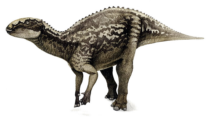 Время и место существованияСуществовали фукуизавры в начале мелового периода, около 125 – 100,5 миллионов лет назад (аптский и альбский ярусы). Были распространены на территории современной Японии. Это важное открытие, ибо свидетельствует о гораздо более широком распространении игуанодонтид в Азии, чем считалось ранее.![]() Реконструкция экзотического ящера выполнена Андреем Атучиным. Виды и история обнаруженияНыне известен один вид – Fukuisaurus tetoriensis, соответственно являющийся типовым.Первые находки были сделаны в карьере Китадани (г. Кацуяма, префектура Фукуи, Япония) в 1989 году. Японские специалисты Ёсицугу Кобаяси и Йоити Адзума дали научное описание уже в 2003. Окаменелости включали в себя правую часть верхней челюсти (экземпляр FPDM-V-40-1) и правую часть скуловой кости (экземпляр FPDM-V-40-2). Название вида tetoriensis дано в честь геологической группы пород Тэтори. С 2003 года продолжились активные раскопки фукуизавра. Найденные останки позволили реконструировать на текущий момент уже более половины скелета. Строение телаДлина тела фукуизавра достигала 4,5 метра. Высота же до 2 метров. Весил он до 400 килограммов.![]() Достаточно универсален: передвигался на двух ногах, но мог опускаться и на четыре. В целом реконструкция выглядит легко и изящно, что свидетельствует о неплохой подвижности. Передние конечности существено меньше задних. У родственного игуанодона эта разница не так заметна. Отметим наличие пальца-шипа на передних конечностях, как у того же игуанодона, но существенно меньшего размера. Фукуизавр не отличался выдающимися параметрами, зато обладал качествами сразу двух семейств: гадрозаврид и игуанодонтид. Ввиду этого промежуточного положения до сих пор остаётся спорным вопрос о принадлежности. Скорее всего, он, как альтирин и пробактрозавр, находится немногим ближе к игуанодонтидам. С большой вероятностью гадрозавриды произошли именно от них: постепенно уплощалась форма черепа и конечности. Средней длины шея гибка. Невысокий гребень из костных отростков шёл по всей спине и хвосту. Он придавал бы сходство с уранозавром, если бы не контрастирующая загруглённая голова. Структура черепа показывает, что сошник буквально слит с верхней челюстью. Боковые движения такими были практически невозможны. Отсюда можно сделать вывод об узком рационе животного.