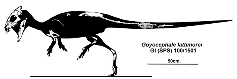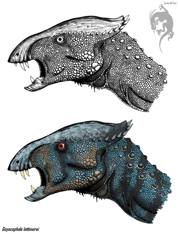 Первые ассоциации, которые обычно вызывает слово "пахицефалозавры", – полусферические купола черепов. Но некоторые монгольские виды ломают устоявшиеся представления: они щеголяли плоскими черепными сводами. Название Goyocephale происходит от монгольского слова "украшенная" и древнегреческого "голова". Поводом послужило строение черепа, похожего на искусно вырезанный сувенир.
