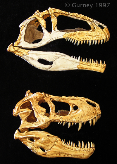 Ориентируетесь на последние исследования? Тогда выкладывайте последние реконструкции, новые изображения. Вы вроде как претендуете на осведомлённость в плане научных работ, и вместо того чтобы ссылаться именно на них, выкладываете любительское изображение, сделанное Джеймсом Гарни, – это просто смешно! При всём моём уважении к нему, он не палеонтолог, а художник, и реконструкция на его картине неверная, она не отличается от таковой в работе 1998 года (где череп гиганотозавра оценивается 1,8 м в длину), а это в корне неверно. Различные варианты реконструкций черепа полностью зависят от взаимного расположения костей.