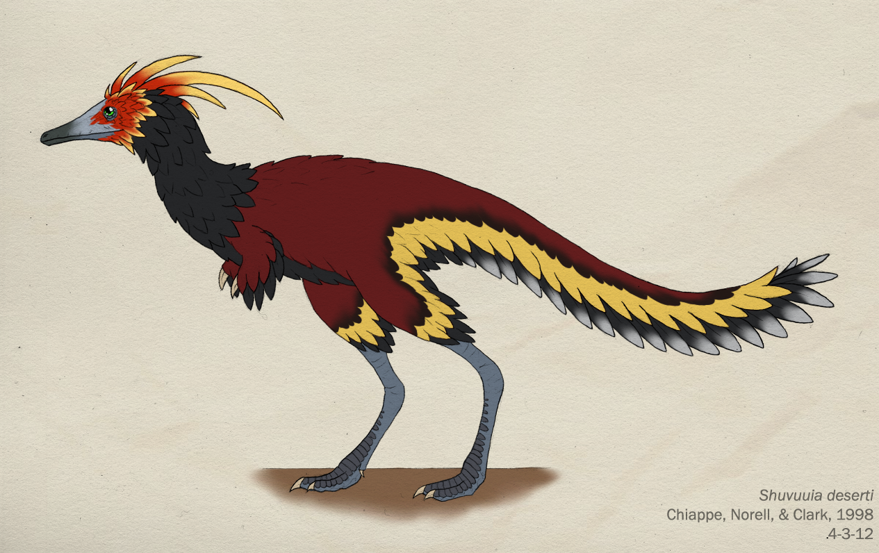 Среди многочисленных семейств тероподов встречаются поистине необыкновенные. Маленькие длинноногие альваресзавриды без сомнения считаются таковыми. Латинское название Shuvuuia происходит от монгольского слова – птица. Ведь сохранились материальные доказательства того, что найденный в пустыне Гоби динозавр был оперённым. Однако никаких крыльев он не имел – передние конечности были явно рудиментарными.